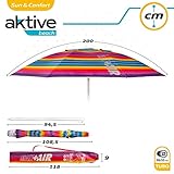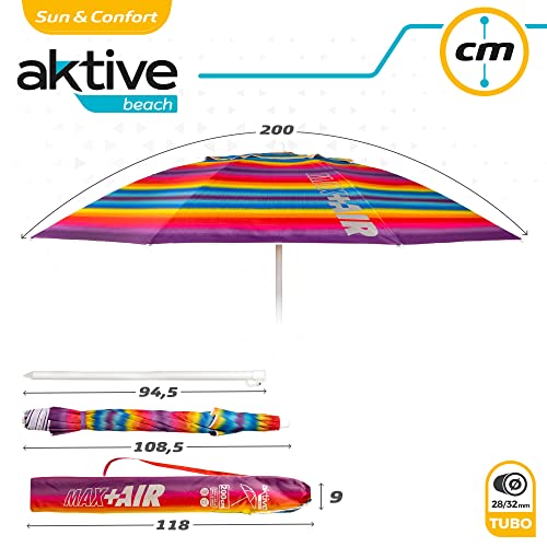 Aktive 62218 - Sombrilla de playa grande, Ø200 cm, Con techo de ventilación, protección UV 50, multicolor, mástil 28-32 mm, mástil flexible, incluye bolsa de transporte, Aktive Beach