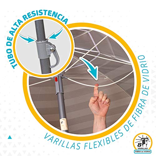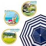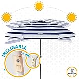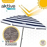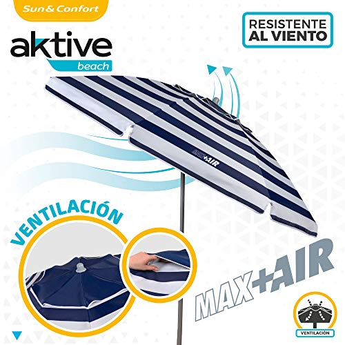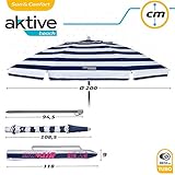 Aktive 62224 - Sombrilla de playa grande, Ø200 cm, Con techo de ventilación, protección UV 50, diseño a rayas marineras, mástil 28-32 mm, mástil flexible, incluye bolsa de transporte, Aktive Beach