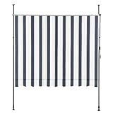 pro.tec Toldo Retráctil Stem Toldos Exterior Terraza Balcón Ajustable en Altura Manual Resistente Protector de Sol Sin Taladrar Acero/Poliéster 350 x 120 x 220-309 cm - Azul Oscuro y Blanco