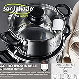 San Ignacio Batería de cocina 8 piezas en acero inoxidable, con juego de sartenes con asador 28x28 cm en aluminio forjado, inducción, PK3153, Color Granito, 18/20/Asador + Bateria