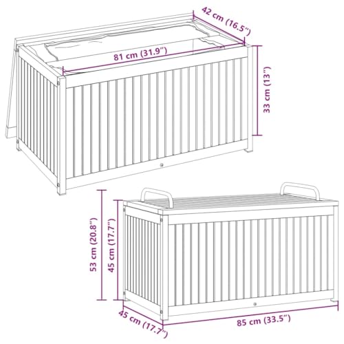 vidaXL Baúl de cojines de jardín acacia maciza y acero 85x45x45/53 cm