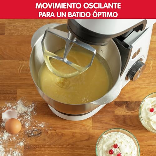 Moulinex Masterchef Gourmet - Robot de repostería, 1100 W, 4,6 L de capacidad, 8 velocidades + Pulse kit de repostería, mezcla homogénea, batidor fundido a presión, gancho masa, libro recetas, QA5101