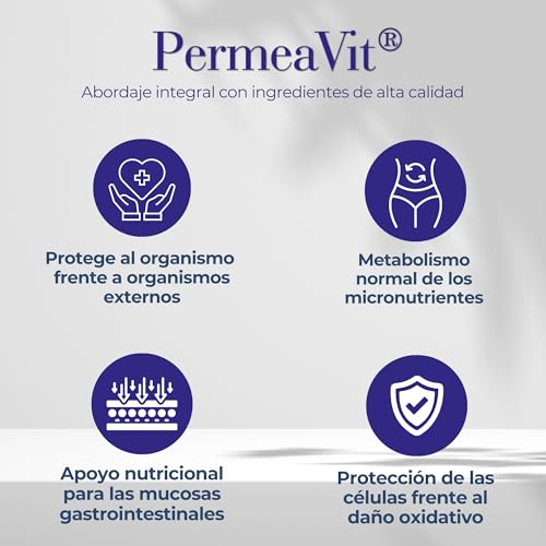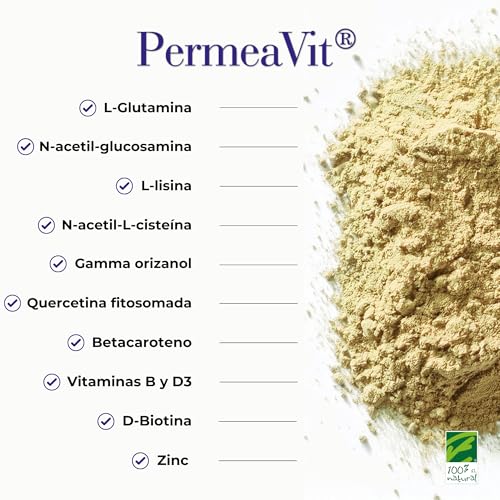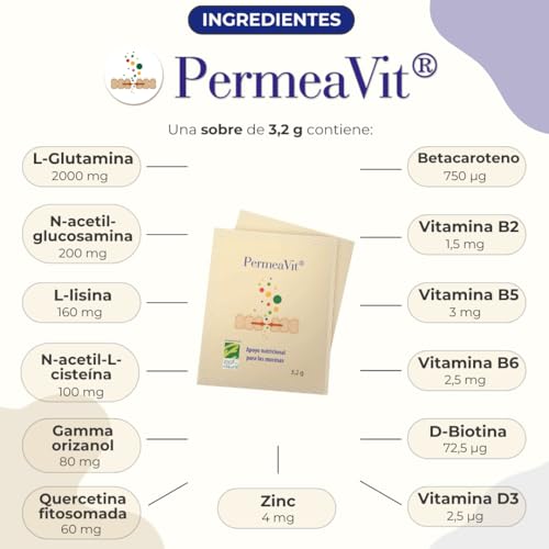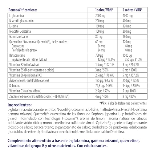 PermeaVit 30 Sobres - Mejora el Tránsito Intestinal Equilibrando las Mucosas - L-Glutamina, Zinc, Lisina, Quercetina y Vitaminas - Mejora tu Salud Gastrointestinal - Bienestar Intestinal - 100%Natural